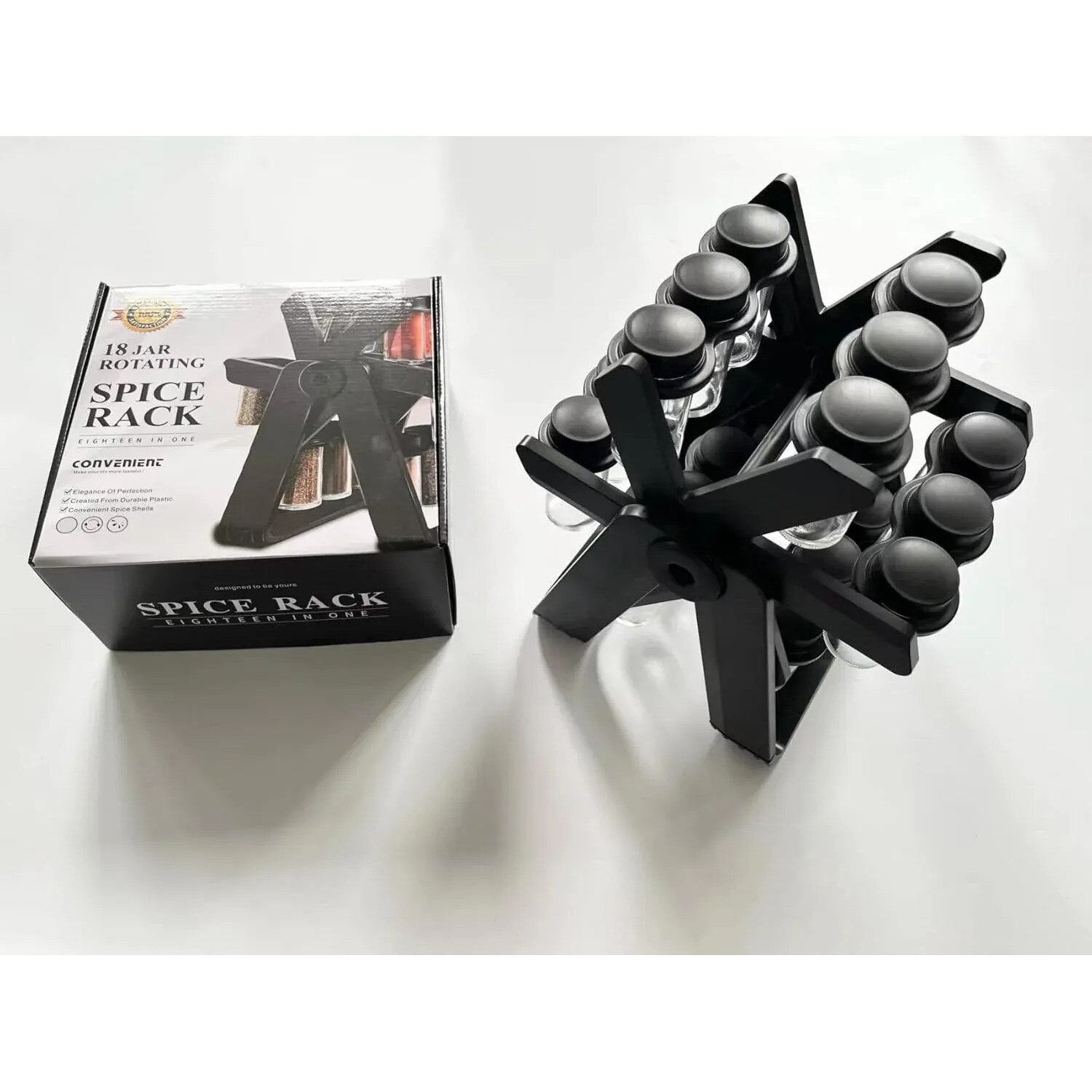 Organizator condimente, rotativ 360°, economiseste spatiul, design elegant si functional, set cu 18 borcane, 29 × 21 × 25 cm - FERRISPICE